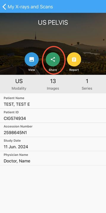 2. Select the scan you'd like to share under 'My X-Rays and Scans' and click Share: